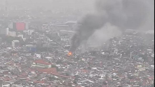 Tampak asap membumbung tinggi. Kobaran api terlihat dari kejauhan.