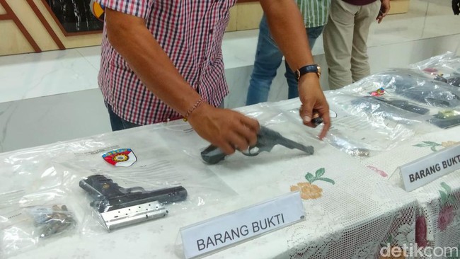 "Setelah korban diambil pelurunya, ternyata pelurunya ada dua, yakni jenis revolver kaliber 38. Kemudian, setelah tersangka tertangkap, diamankan dua senjata api dengan merek SNW dan merek Colt kaliber 9 mm," ujarnya.