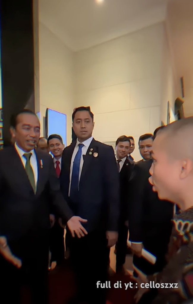 Setelah itu, video tersebut menampilkan momen pertemuan Cellos dengan Jokowi. Cellos mengajak Jokowi melakukan selebrasi 'siuuu'.