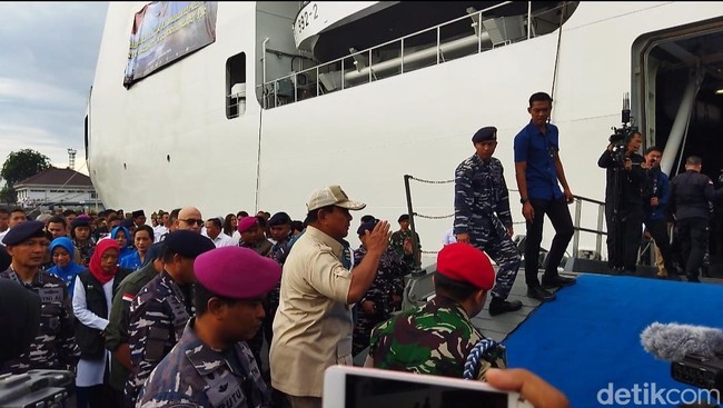 Prabowo selanjutnya menyampaikan selamat bertugas kepada para awak kapal yang berjumlah 214 personel. Dia juga mengingatkan anggota TNI yang berangkat untuk tetap waspada dan percaya pada komandan yang memimpin perjalanan