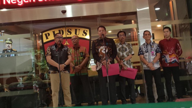 "Sebagaimana yang kita ketahui setelah dilakukan pemeriksaan beberapa saksi dan berdasarkan alat bukti yang cukup, pada hari ini kami menetapkan enam orang saksi sebagai tersangka," kata Direktur Penyidikan Jampidsus Kejagung, Kuntadi, di Gedung Jampidsus, Kejagung RI, Jakarta Selatan, Jumat (19/1/2024).