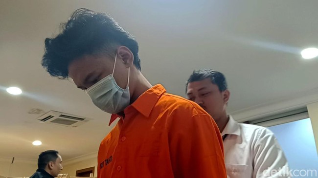 Pantauan detikcom, Senin (22/1/2024), pukul 13.05 WIB, Argiyan dibawa ke ruang konferensi pers. Dia memakai baju tahanan oranye.