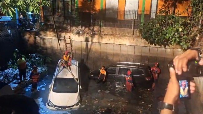 "Proses evakuasi kedua mobil yang terperosok dilakukan oleh petugas pemadam kebakaran," ucapnya.