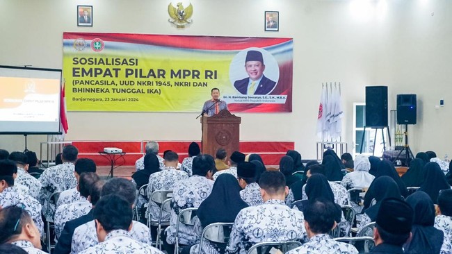 Hal ini disampaikannya dalam Sosialisasi 4 Pilar MPR RI hari ke-6 dalam kunjungan ke Dapil-7 bersama Keluarga Besar Persatuan Guru Republik Indonesia (PGRI) Kabupaten Banjarnegara, Selasa (23/1/24).