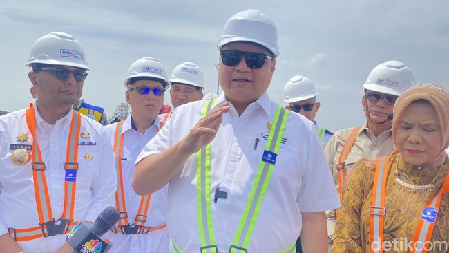 "(Target rampung) 2025," kata Airlangga kepada wartawan saat meninjau Pelabuhan Patimban, Subang, Jabar, Rabu (24/1/2024).