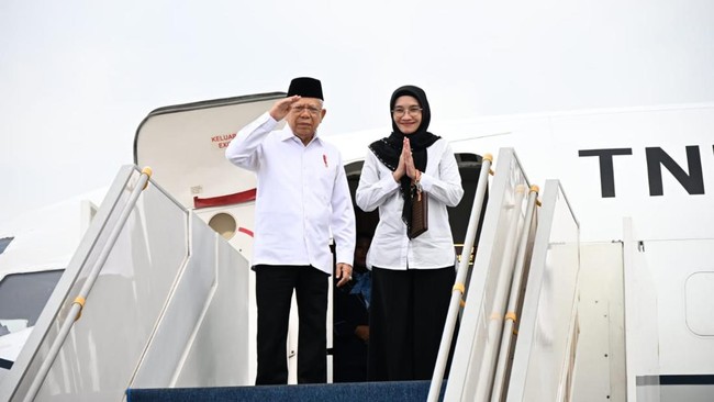 Wakil Presiden Ma'ruf Amin bertolak ke Jawa Tengah (Jateng) untuk meninjau rumah sakit di Kota Semarang hingga mengunjungi pondok pesantren di Lasem, Rembang. Dalam kunjungan kerja ini, Ma'ruf didampingi istri, Wury Ma'ruf Amin.