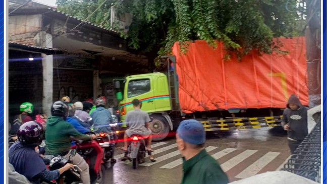Berdasarkan foto yang diunggah TMC Polda Metro Jaya, kecelakaan itu dilaporkan pada pukul 08.43 WIB. Sebuah truk tampak menutup jalan, pengendara motor tampak mengantre di sekitar lokasi kejadian.