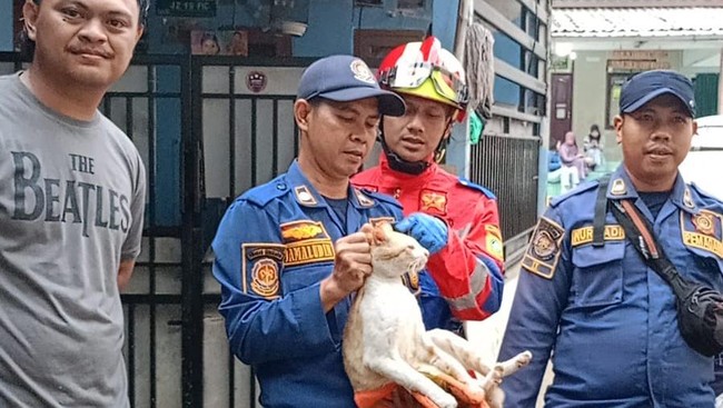 Hingga pada Minggu (28/1), petugas mendapatkan laporan si oyen ada di tempat bakso. Petugas kemudian datang ke lokasi dan mengevakuasi kucing oyen tersebut.