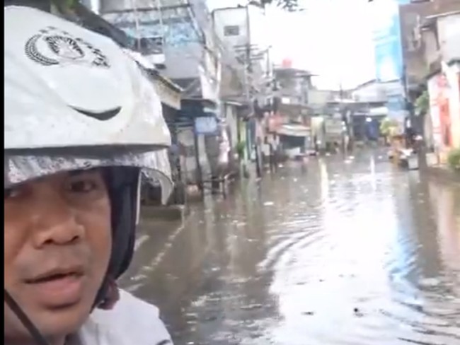Berdasarkan video yang diunggah TMC Polda Metro, seorang petugas kepolisian melaporkan dari kawasan tersebut. Terlihat banjir menggenangi kawasan padat pemukiman tersebut.