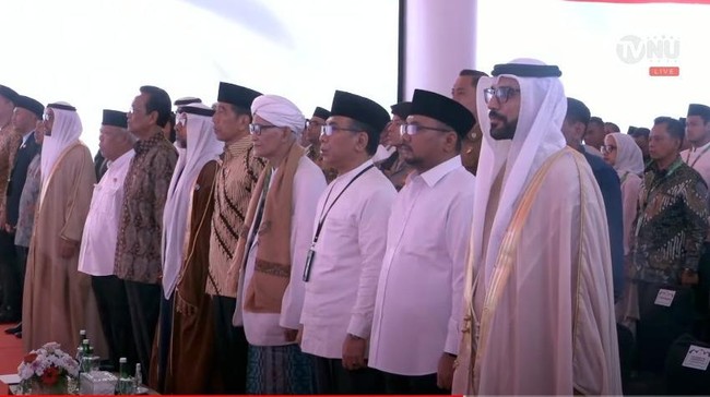 Jokowi tiba di lokasi didampingi Menag Yaqut Cholil Qoumas dan Ketua Umum PBNU Yahya Cholil Staquf. Terlihat juga Rais Aam Pengurus Besar (PBNU) KH Miftahul Akhyar, Menteri PUPR Basuki Hadimuljono, Menpora Dito Ariotedjo, hingga Sultan Hamengku Buwono (HB) X. Kapolri Jenderal Listyo Sigit Prabowo dan Panglima TNI Jenderal Agus Subiyanto turut mendampingi.
