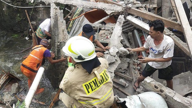 "Diduga adanya longsor di pinggir kali karena letak pos yang berada di atas kali," ujarnya.