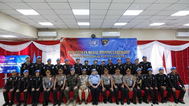 Personel Polri yang bertugas sebagai Individual Police Officer (IPO) pada misi perdamaian United Nation Missionin South Sudan (UNMISS) meraih penghargaan. Total ada 33 persinel yang mendapatkan penghargaan tersebut.