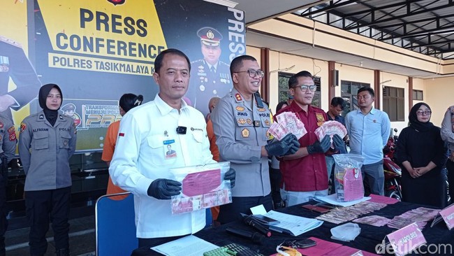 "Ketiga tersangka sudah mengetahui bahwa uang dalam penguasaannya tersebut merupakan uang tidak layak edar, diduga uang palsu. Namun tersangka datang ke kantor Perwakilan Bank Indonesia Tasikmalaya dengan maksud untuk menukarkan uang pecahan 100.000, sebanyak 1.144 lembar. Jika uang itu asli, nilainya mencapai Rp 114.400.000," kata Kapolres Tasikmalaya Kota AKBP Joko Sulistiono, Kamis (1/2/2024).
