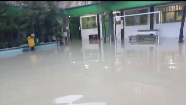 Karena terendam banjir, pihak sekolah terpaksa meminta para murid untuk melakukan aktivitas belajar di rumah. Sebab, tidak memungkinkan bagi pihak sekolah tetap melakukan aktivitas belajar mengajar di tengah ruangan yang terendam banjir.