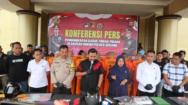 "Penangkapan 16 tersangka tindak pidana umum dilakukan oleh beberapa unit reskrim polsek jajaran Polres Serang dilakukan dalam kurun waktu satu minggu," kata Kasat Reskrim Polres Serang AKP Andi Kurniady Eka Setiabudi kepada wartawan, Rabu (7/2/2024).