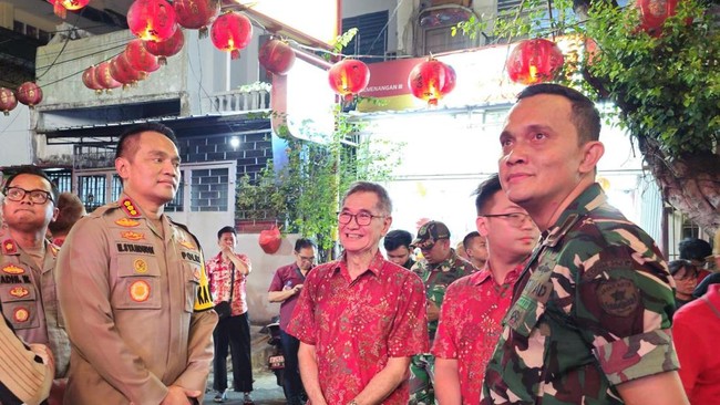 Kapolres Metro Jakarta Barat Kombes M Syahduddi meninjau perayaan Imlek di Vihara Dharma Bakti atau Petak 9, Glodok, Jakarta Barat. Syahduddi memastikan perayaan Imlek 2024 di wilayah Jakarta Barat berlangsung aman.