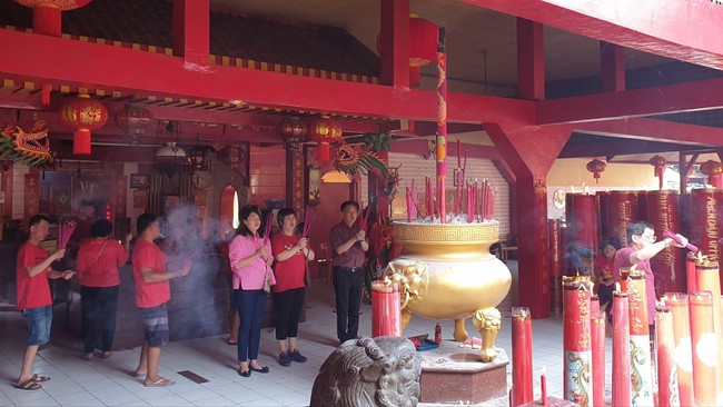 Sejak pagi, terlihat masyarakat Tionghoa mengenakan pakaian berwarna merah silih berganti mengunjungi vihara ini untuk mempersembahkan doa dan harapan mereka kepada Dewa-dewa. Para pengunjung bersemangat berkeliling vihara sambil membakar hio atau dupa serta beribadah dengan khusyuk.