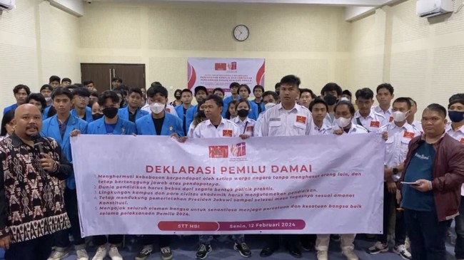Badan Eksekutif Mahasiswa Kristiani Seluruh Indonesia (BEM KSI) menggelar deklarasi Pemilu damai. BEM KSI mengajak seluruh elemen bangsa untuk menjaga persatuan dan kesatuan Indonesia.