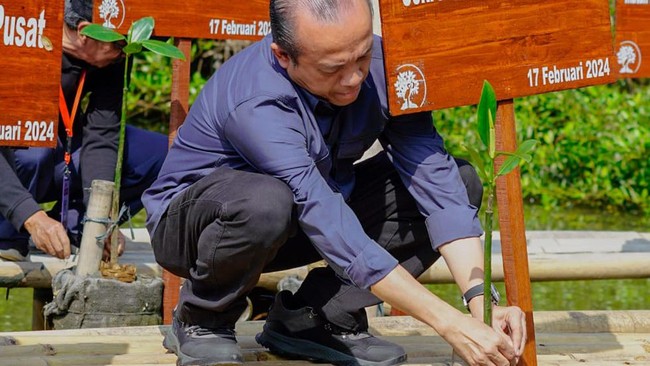 Kementerian Lingkungan Hidup dan Kehutanan (KLHK) dan Persatuan Wartawan Indonesia (PWI) menanam mangrove di Taman Wisata Alam (TWA) Angke Kapuk, Jakarta. Acara itu sebagai peringatan Hari Pers Nasional (HPN) tahun 2024.