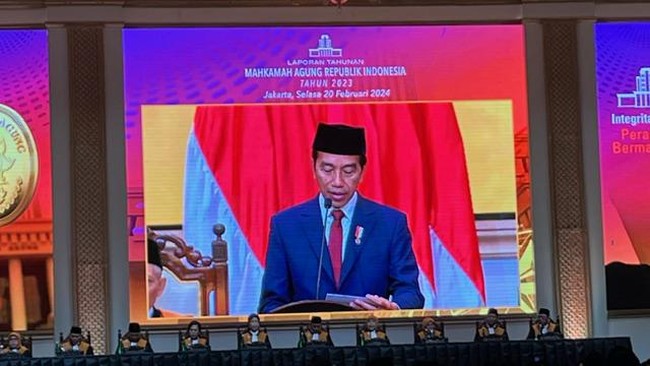 "Saya memperoleh laporan di tahun 2023 Mahkamah Agung berhasil memutus hingga 99,47 persen perkara. Ini perkembangan yang sangat-sangat bagus. Namun demikian, bukan hanya kuantitas putusan yang penting. Yang paling utama adalah kualitas putusan," kata Jokowi dalam sambutannya di Laporan Tahunan MA, Jakarta Convention Center (JCC), Jakarta, Selasa (20/2/2024).