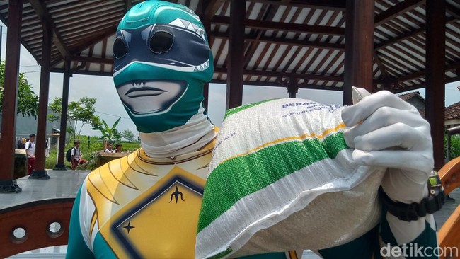 Salah satu penerima bantuan beras 10 kilogram di Desa Tambakan, Kecamatan Jogonalan, Klaten, bernama Sarijo menjadi sorotan. Dia mengenakan kostum tokusatsu, atau superhero Power Rangers saat menerima bantuan.