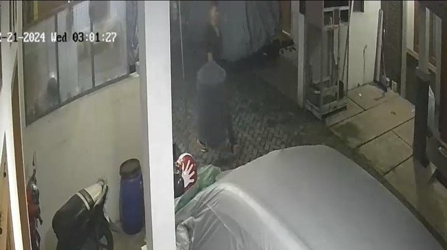 Dari video CCTV yang diterima detikcom, peristiwa itu terjadi pada Rabu (21/2/2024), pukul 03.51 WIB di Cluster Kampung Rawa Sari, Cipayung, Depok. Terlihat pelaku mengenakan baju panjang berwarna hitam.