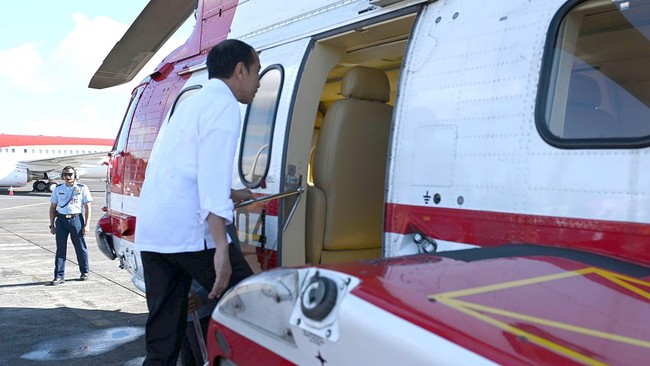 Presiden Joko Widodo (Jokowi) melanjutkan kunjungan kerja (kunker) ke Kabupaten Bolaang Mongondow, Provinsi Sulawesi Utara (Sulut). Jokowi naik Helikopter Super Puma TNI AU.