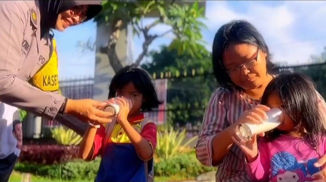 "Terima kasih untuk Polresta Bogor untuk sarapan gratisnya, juga pemberian susu untuk anak-anak. Menurut saya program ini bagus banget ya, menunya jadi 4 sehat 5 sempurna. Sekali lagi terima kasih," kata seorang ibu yang datang bersama anak perempuannya di lokasi.