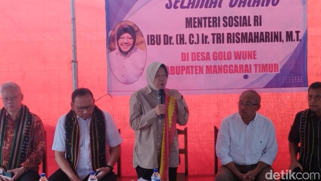 Menteri Sosial (Mensos) RI Tri Rismaharini melakukan kunjungan kerja ke Desa Golo Wune, Nusa Tenggara Timur (NTT). Dalam kunjungannya itu, Risma mengatakan Kemensos akan memberikan bantuan makan gratis untuk lansia dan penyandang disabilitas 2 kali sehari.