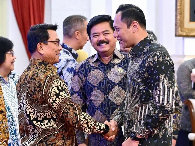 Presiden Joko Widodo (Jokowi) mengunggah momen sidang kabinet paripurna yang digelar di Istana, Jakarta, hari ini. Dalam unggahannya itu, Jokowi menyisipkan salah satu foto unik saat Kepala Staf Kepresidenan (KSP) Moeldoko dan Menteri Agraria Tata Ruang (ATR) Agus Harimurti Yudhoyono (AHY) bersalaman sebelum sidang berlangsung.
