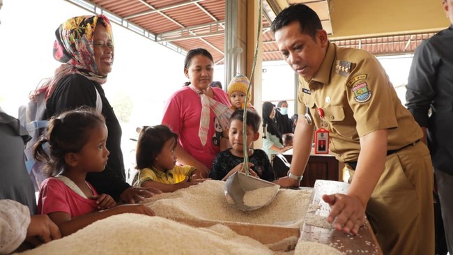 Pejabat (Pj) Bupati Tangerang Andi Ony melakukan sidak ke gudang beras di Kecamatan Teluknaga. Sidak ini digelar guna memastikan harga beras masih terjangkau serta melihat langsung keamanan stok beras.