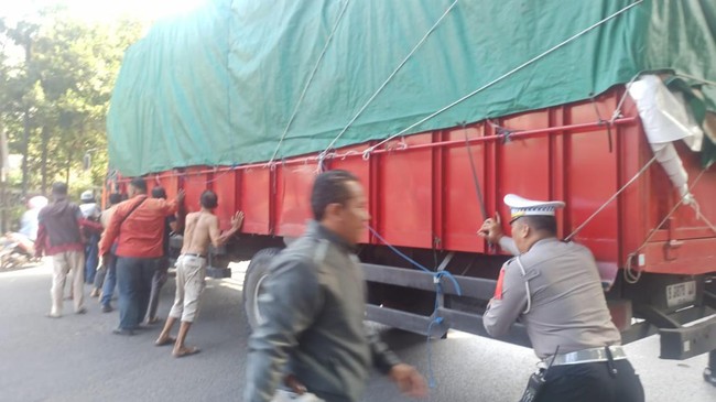 "Evakuasi truk sebentar, kita bantu dorong bersama masyarakat. Lalu lintas sudah lancar kembali, sudah normal sekarang," kata Susilo.