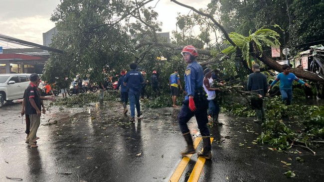 Dalam foto yang diterima detikcom, pohon tumbang berukuran besar melintang di tengah jalan. Kejadian tersebut membuat arus lalu lintas di sekitar lokasi mengalami kemacetan.
