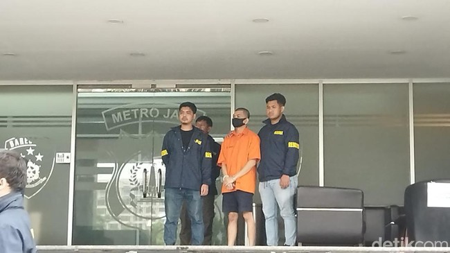 Pantauan detikcom di Polda Metro Jaya, Rabu (28/2/2024) pukul 10.30 WIB, tersangka Yudha digiring polisi dari ruang pemeriksaan. Yudha terlihat memakai baju tahanan berwarna oranye dan kedua tangannya diborgol.
