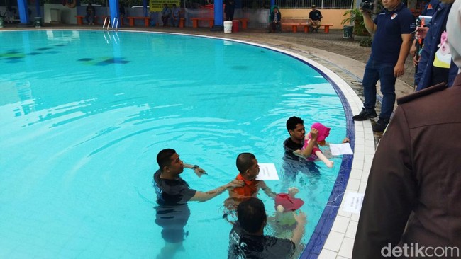 Pantauan detikcom di lokasi, Rabu (72/2/2024), adegan dimulai ketika tersangka Yudha bersama anaknya, M (6), dan Dante berenang bersama. Dalam reka ulang diperagakan adegan ketika Yudha menoleh-noleh ke arah CCTV sebelum menenggelamkan Dante.