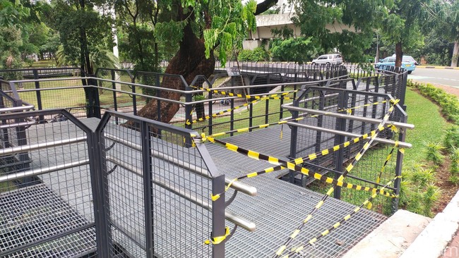 Proyek jalur pedestrian di kawasan Taman Semanggi, Jakarta Pusat (Jakpus) tak kunjung dibuka, sehingga belum juga bisa digunakan pejalan kaki. Warga mengeluhkan hal ini. Padahal ini sudah dibikin sejak dua tahun lalu.