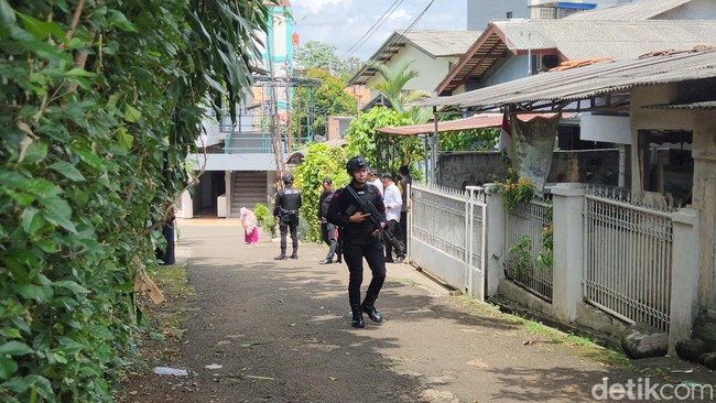 Pantauan detikcom di lokasi, Sawah Lama, Ciputat, Tangerang Selatan (Tangsel), Senin (4/3) pukul 10.30 WIB, Tim Gegana bersenjata lengkap berjaga di lokasi. Selain itu, petugas kepolisian dan TNI berjaga di lokasi.