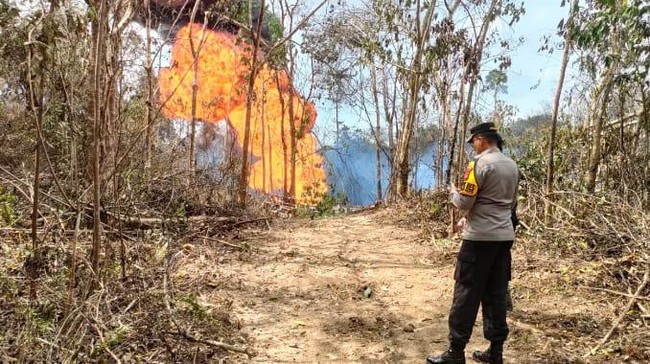 Plh Kasubbid Penmas Polda Jambi Kompol M. Amin Nasution membenarkan bahwa api yang menyala sejak Jumat (23/2) malam itu belum padam. Polisi bersama Pertamina masih berupaya melakukan pemadaman.