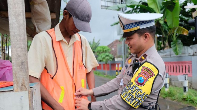 "Satlantas Polres Malang hadir di sini sebagai bentuk kepedulian, memberikan dukungan dan peralatan keselamatan kepada para petugas penjaga perlintasan kereta," tambahnya.