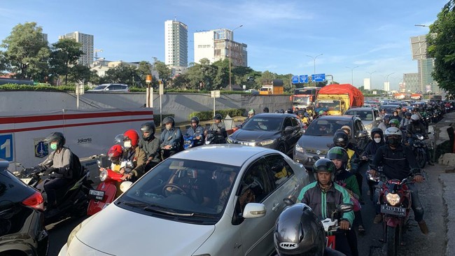 Kemacetan terjadi di Jalan TB Simatupang, Jakarta Selatan, yang mengarah ke Pasar Rebo, Jakarta Timur. Kemacetan ini terjadi karena ada galian.