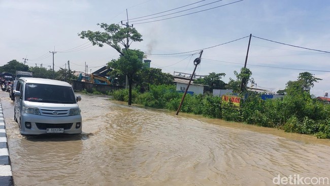 Dilansir detikJabar, ruas jalan pantura Cirebon yang terendam banjir berada di wilayah Desa Rawaurip, Kecamatan Pangenan, Kabupaten Cirebon, pada Rabu (6/3/2024).
