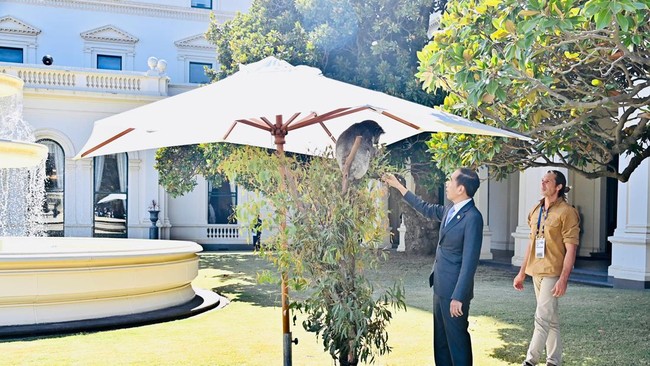 Presiden Joko Widodo (Jokowi) menghadiri jamuan makan siang Konferensi Tingkat Tinggi (KTT) Khusus ASEAN-Australia. Dalam kesempatan itu, Jokowi tampak berinteraksi dengan koala, yang merupakan salah satu hewan berkantung (marsupial) khas dari Australia.