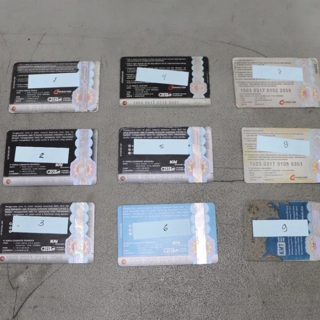 Polisi menemukan 10 kartu multitrip KRL yang dimiliki Addril. Kartu-kartu tersebut telah diisi saldo oleh Addril.