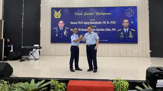 Agung dan Bambang telah menjalani acara serah terima jabatan tadi pagi. Setelah itu, keduanya menggelar acara pisah sambut di Ardhya Loka, Halim Perdanakusuma, Jakarta, Rabu (6/3/2024).