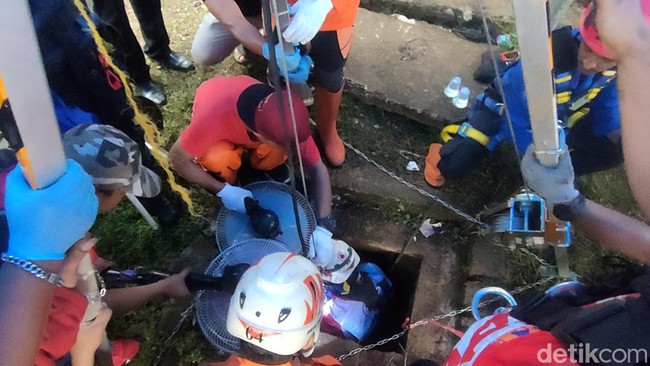 Sesaat kemudian, Jajan (28), yang ketika kejadian tengah berada di sekitar rumah Hada, pun masuk ke sumur dan membantu korban.