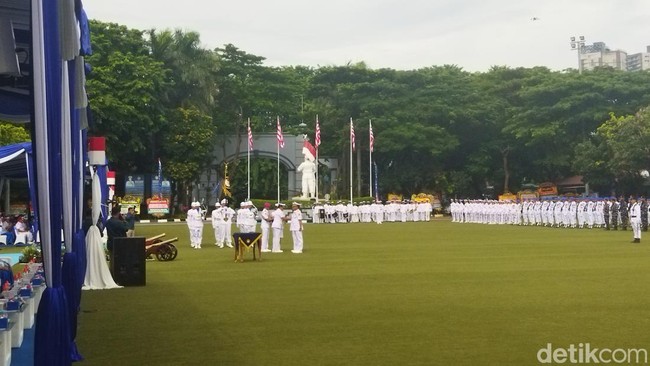 Kepala Staf Angkatan Laut (KSAL), Laksamana TNI Muhammad Ali memimpin upacara pengambilan sumpah dan penandatangan pakta integritas serta serah terima jabatan (Sertijab) Panglima Komando Armada Republik Indonesia (Pangkoarmada RI). Tongkat kepemimpinan Pangkoarmada RI dari Laksamana Madya (Laksdya) TNI Heru Kusmanto berpindah ke Laksamana Madya TNI Denih Hendrata.