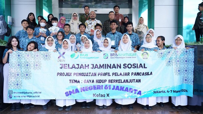 BPJS Ketenagakerjaan menggelar Jelajah Jaminan Sosial di SMA Negeri 61 Jakarta. Kegiatan ini sebagai upaya meningkatkan literasi soal manfaat jaminan sosial, agar dimasukkan ke dalam kurikulum pembelajaran siswa lewat Modul Projek Penguatan Profil Pelajar Pancasila.