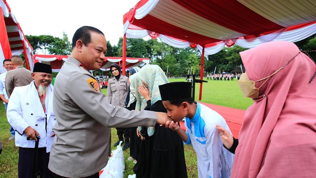 Sebagai bentuk sinergitas Polri-TNI, Irjen Asep melepas ratusan anggota Bhabinkamtibmas dan Babinsa untuk membagikan langsung ribuan paket sembako ke warga di Kabupaten/Kota Sukabumi dan ke pondok pesantren.