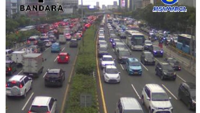 Kemacetan terjadi di ruas Tol Dalam Kota dari Cawang mengarah ke Senayan. Kemacetan terjadi karena kepadatan volume lalu lintas.