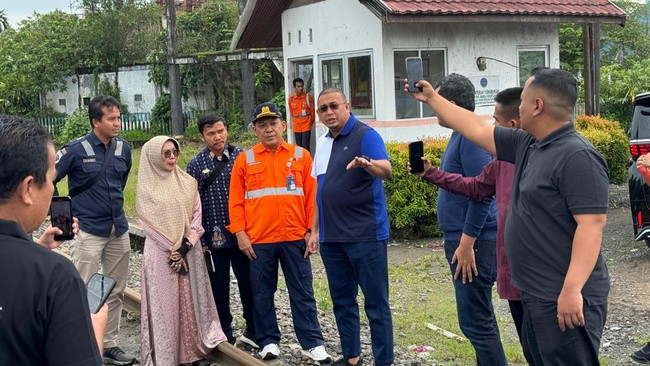 Andre mengunjungi perlintasan kereta api di Kasang dan Pasar Usang bersama dengan Vice President PT KAI (Persero) Divre II Sumbar Sofan Hidayah, Kasubag TU Balai Perkeretaapian Sumbar Aslinawani Sirait dan pihak dari Kementerian Perhubungan (Kemenhub), pada Minggu (10/3/2024) pagi.